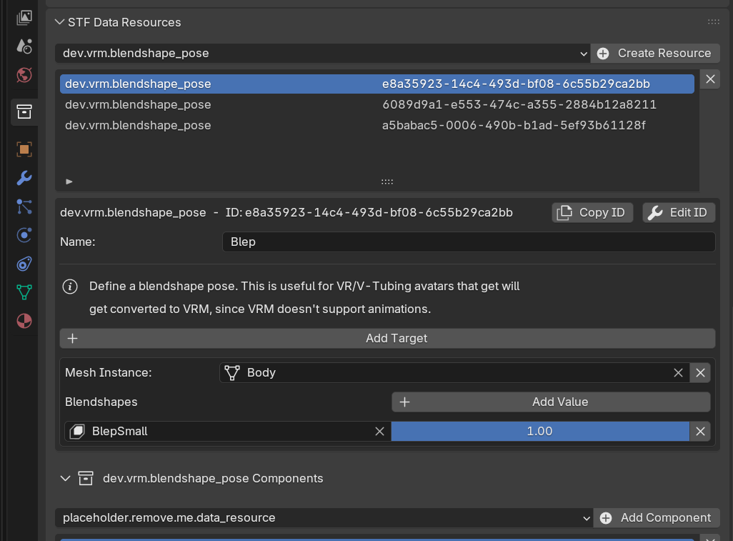Each of these resources gets a properties panel to represent STF specific values, such as the unique ID.